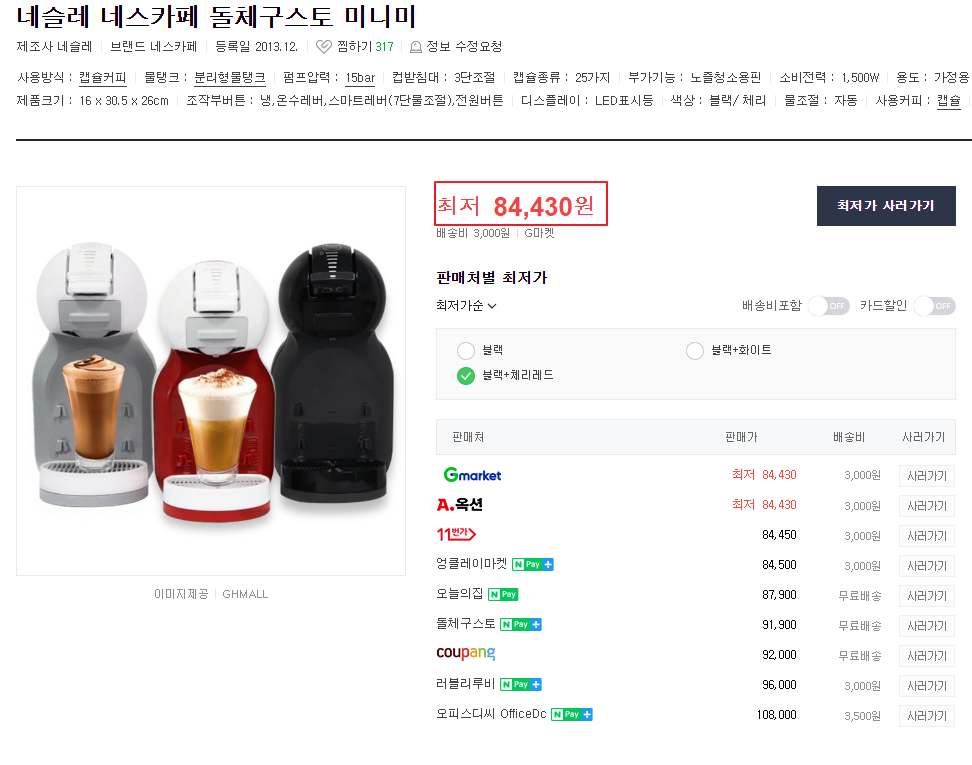 제가 당근으로 돌체구스토를 싸게 구입했습니다. 매일 커피값도 아깝고 카페까지 가는 것도 귀찮아서 당근으로 싸게 구입했습니다. 제가 구입한 제품은 네스카페 돌체구스토 미니미입니다. 홈페이지에서는14만원 정도에 판매하고 있어요! 제가 당근으로 구매한 제품은 블랙&체리레드입니다.